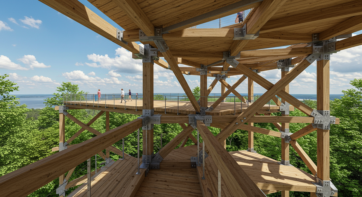 Overlooking Ephraim's Eagle Harbor, Eagle Tower is a 60-foot-tall structure offering panoramic views of the park, the harbor, the bay of Green Bay, and surrounding islands. Visitors can climb the tower's 100 steps or take a scenic route across an 850-foot accessible canopy walk.